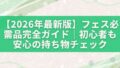 フェス必需品チェックリスト【完全版】まずこれを準備すればOKフェスが近づくと「これで足りるのだろうか」と荷物を何度も見直しがちですが、不安の正体は全体像が見えていないことにあります。現地で困る人の多くは特別なグッズを忘れたのではなく、基本中...