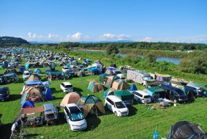 花火が終わると、渋滞になってしまいます。普段の3倍の時間がかかります。そのため、はじめからから当日は帰らないで河川敷のキャンプエリアでキャンピングカー、やテントで止まる観光客も多いですね。
